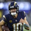 Thursday night’s blowout loss to the Chargers was the fifth straight game that the Vikings played without quarterback J.J. McCarthy and watching Carson Wentz...