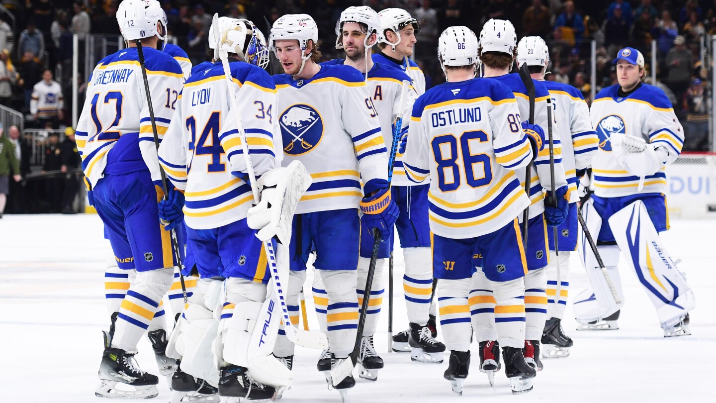 Josh Doan had a goal and an assist during Buffalo’s four-goal first-period, and Alex Lyon stopped 21 shots to help the Sabres take a 3-1 lead in their first-round playoff series. Buffalo, which fell behind in each of the first three games, took a 6-0 lead before the Bruins got on the board in the final minute.