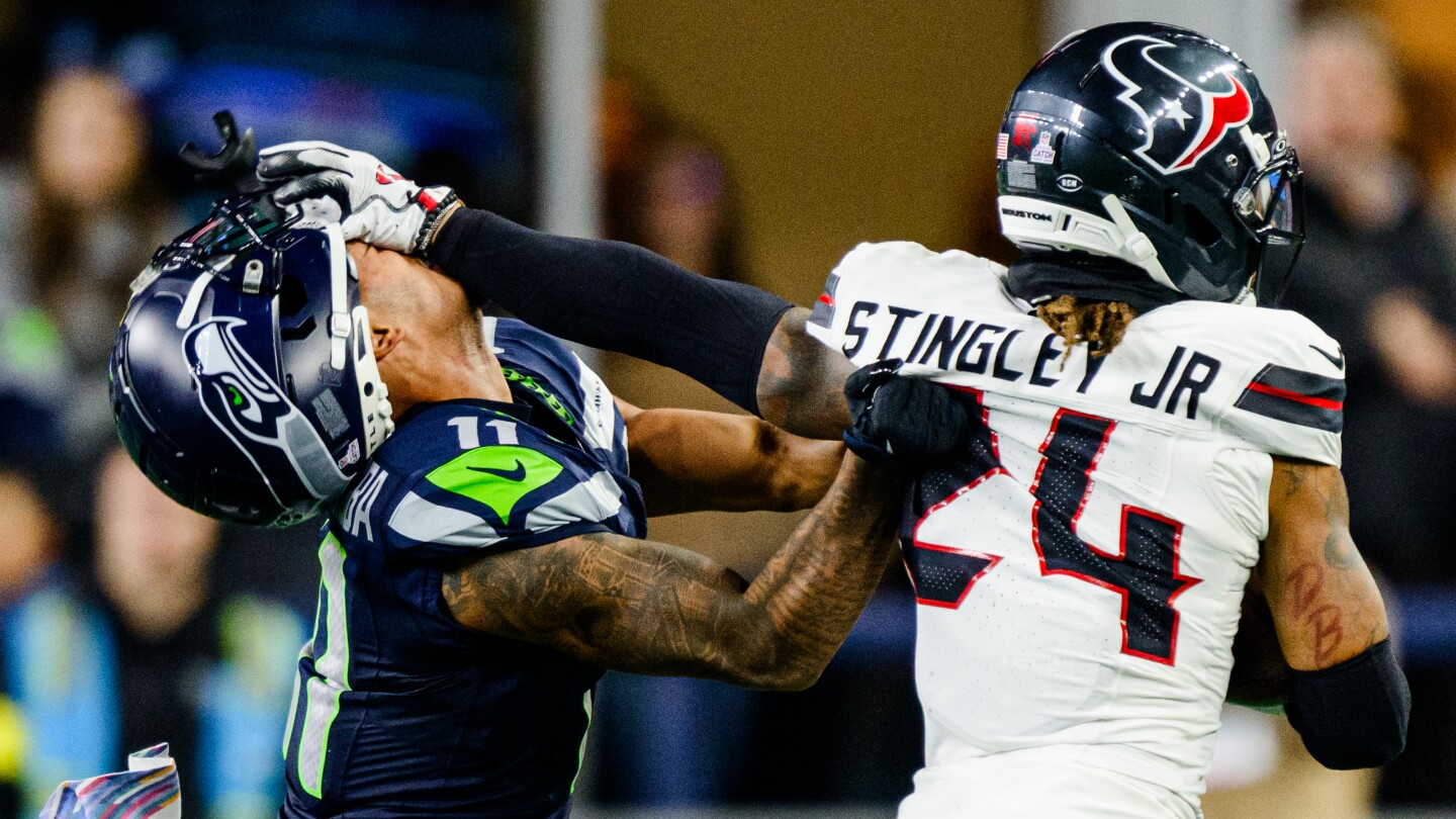 Stingley’s facemask set off a fracas on the Texans’ sideline with Texans linebacker Christian Harris shoving Smith-Njigba. Only Stingley was fined.